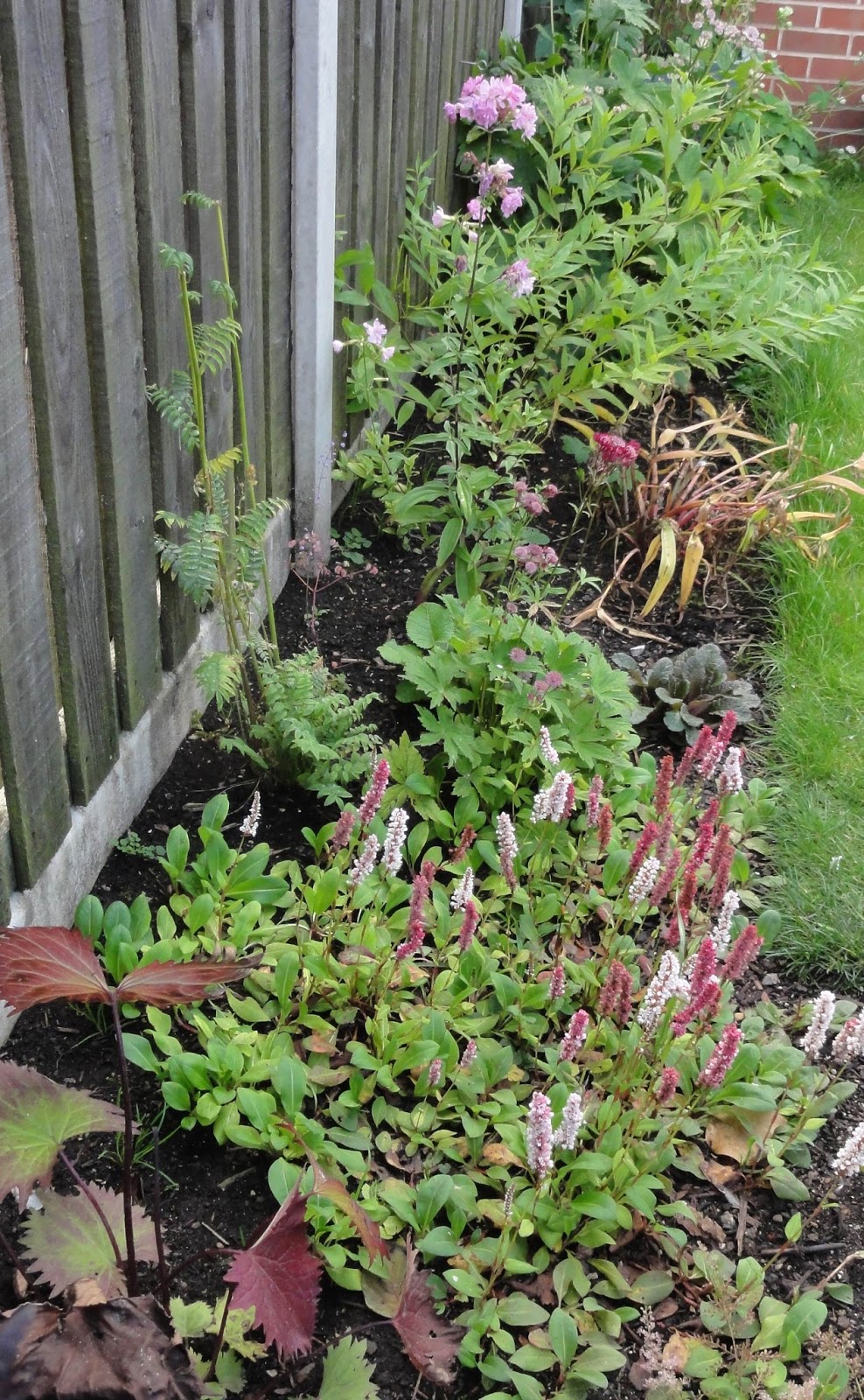 On a whim, I added the pink Anemone hupehensis ‘Splendens’ to this part of the border. It says it will grow in part-shade, so I’m hoping that the part-shade position where I planted it acceptable! I would be grateful for any suggestions of other flowering plants for late summer/early autumn that like shadier borders.