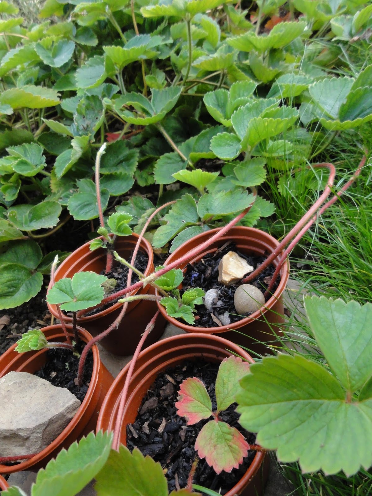 I started rooting Strawberry runners in pots late August, following the instructions, again from Jono, of siting the pots within the patch and using stones to hold down runners to help them take root. Jono really is worth following if you love growing vegetables; he writes engaging posts with lots of really helpful tips.