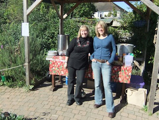 I pretty much organised everything, and was lucky enough to have some great volunteers to help pull it together on the day. My lovely friend Jackie, seen here on the right, helped out with the refreshments for a couple of hours. As well as tea, coffee and biscuits, we had baked potatoes, baked in the garden’s tandoor oven, and had gorgeous carrot and coriander soup from the Magic Cafe (great veggie cafe in East Oxford).