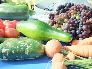 We also had a ‘fruit and veg swap’. This is something I made up, it came to me when on holiday in Shropshire in July. The idea was that people would bring some of the fruit and veg they had grown, or turned into jam etc, and swap it with something else they didn’t have. We collected it all together for a couple of hours, then at 2pm did the ‘swap’. It was quite lively, lots of people chatting to each other. I had brought some carrots, tomatoes and garlic to swap, and luckily picked up some Damson and Apple jam. Damson jam, my favourite!