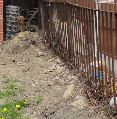 The neighbours living behind our house obviously decided to put up a new fence, the old fence being steel railings which mean everyone could see into each others garden and conservatory. The concrete block was actually on their side of the fence and they decided not to bother with it and just build the new fence in front of it. Well, that’s one solution, but it means that I now have about 30cms of their land on my side of their fence.